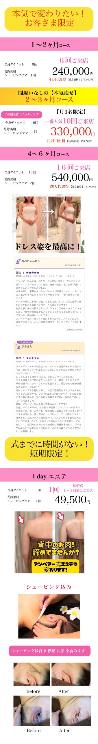 アンベア ーのブライダルエステをご利用されたお客様より頂いた